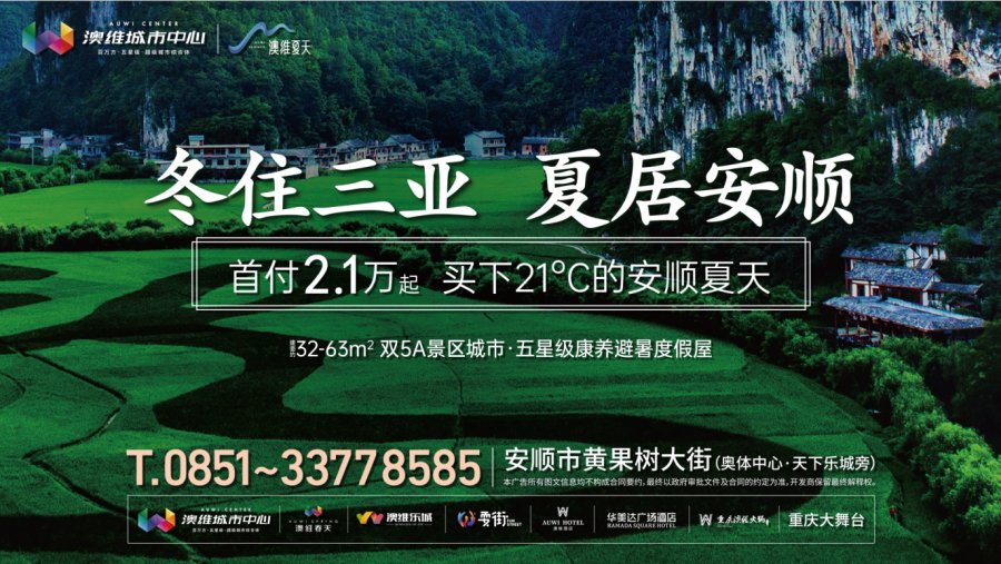 安顺倾力打造旅游都会,城市势能之下,安顺综合实力第一澳维集团,于都会之心,打造安顺文旅标杆项目澳维夏天,以双5A景区城市·五星级康养避暑度假屋的姿态,向世界展现独特的城市魅力。
