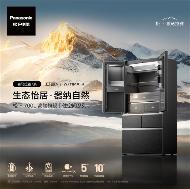 此外,作为松下「一套住空间」高端旗舰产品线的核心成员,喜马拉雅系列冰箱以喜马拉雅山脉岩石纹理为灵感,将自然原生态与食材本真保鲜相融,深度践行“生态怡居·器纳自然”理念,让科技与生活在家居场景轻松实现。