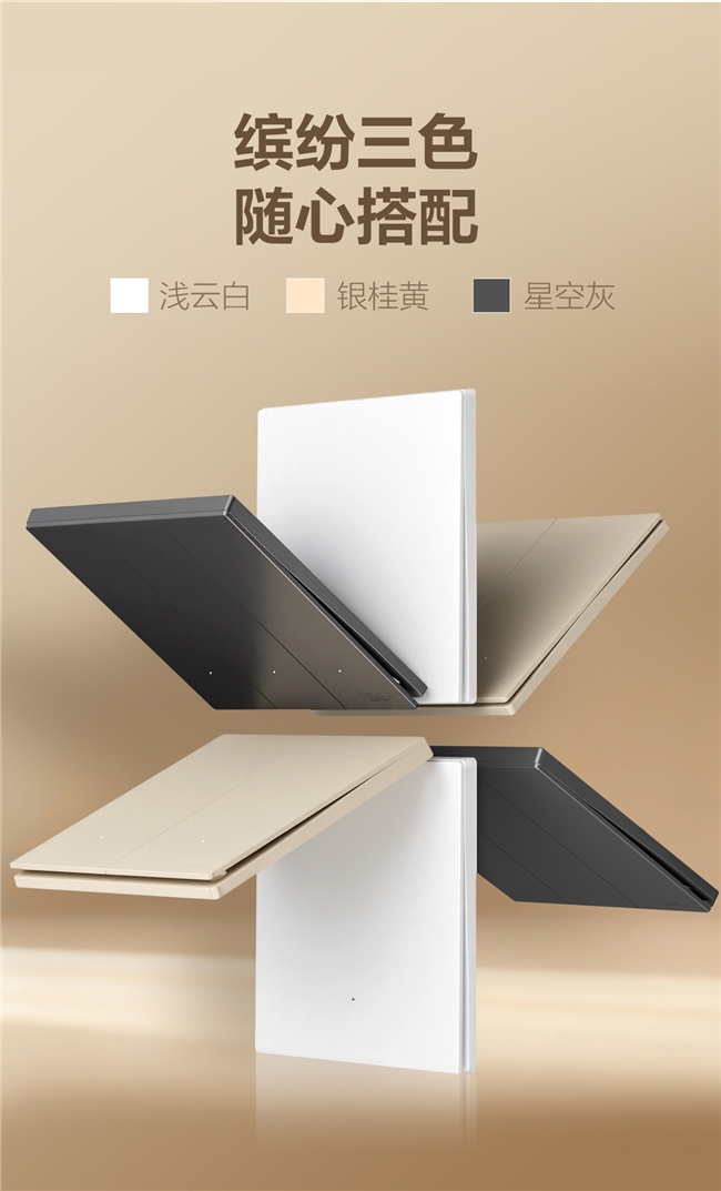 色彩上,新品提供浅云白、银桂黄、星空灰三大主流色系,精准适配奶油风、极简风、现代简约等当下热门装修趋势,让开关从单一功能器件,升级为提升空间格调的墙面美学细节。搭配1.2mm 加厚钢架与850℃阻燃壳体,在纤薄外观下,依旧坚守德力西电气一贯的安全与耐用高标准。